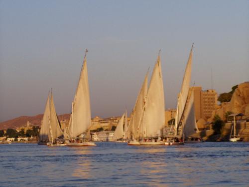 Segelschiffe hier auf dem Nil. Es macht Laune mit so einem Kahn in der